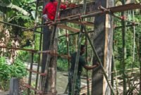 Minahasa Utara – Program pekerjaan fisik pembangunan jembatan gantung Perintis Garuda, terus dipercepat oleh jajaran Kodim 1310/Bitung melalui peran aktif personel Babinsa di lokasi….