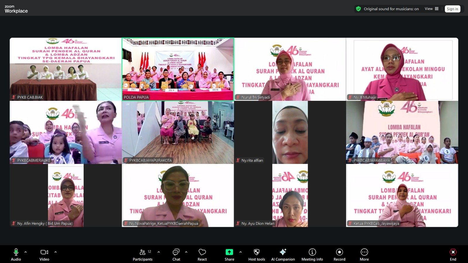 Kegiatan ini mencakup tiga kategori utama, yaitu Lomba Hafalan Surah Pendek Al-Qur’an, Lomba Adzan, dan Lomba Hafalan Ayat Alkitab. Acara dibuka secara resmi oleh Ketua Pengurus YKB Daerah Papua, Ny. Nova Patrige Renwarin, yang hadir melalui sambungan daring (Zoom Meeting).